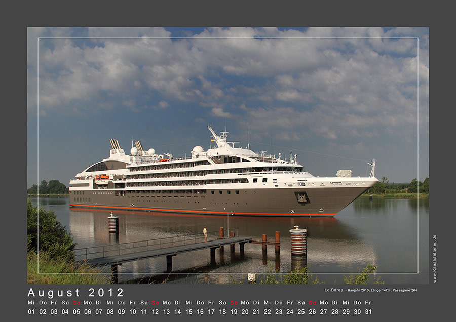 Erstmals haben wir für 2012 einen Kalender mit 13 Traumschiff-Fotoaufnahmen aufgelegt. Alle Fotos zeigen die Kreuzfahrtschiffe während der Passage durch den Nord-Ostsee-Kanal.
