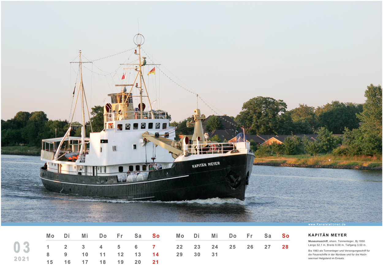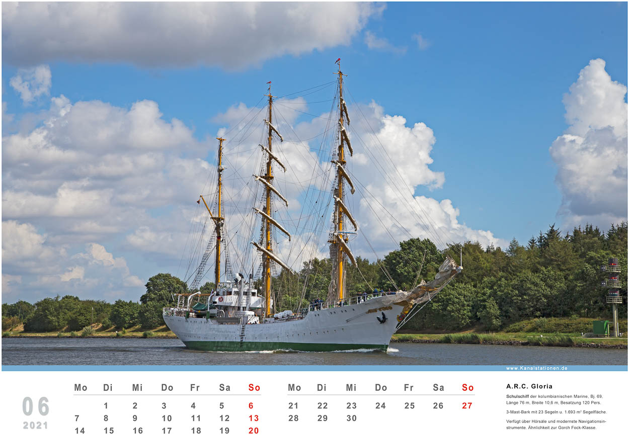 Kalender mit Fotos von 12 Traumschiffen. Alle Aufnahmen zeigen die Kreuzfahrtschiffe während der Passage durch den Nord-Ostsee-Kanal.