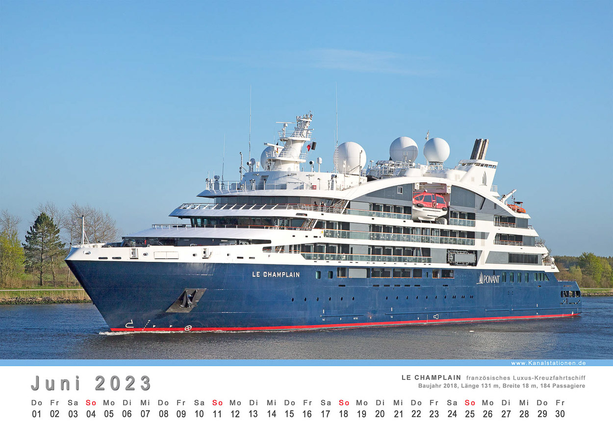 Kalender mit je 6 Fotos von Traumschiffen und Yachten. Alle Aufnahmen zeigen die Schiffe während der Passage durch den Nord-Ostsee-Kanal.